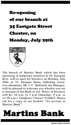 newspaper on 26 July 1963, Martins Bank announces both the closure of its temporary
