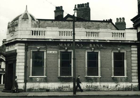 Martins Bank’s Branch at Brook’s Bar has had an amazing life: Since its establishment by the Palatine Bank in 1904, the times, the people, and the surroundings may have changed beyond recognition, but the building itself remains looking pretty much the same - albeit under new ownership. We have various features from Martins Bank Magazine and Four Centuries of Banking to illustrate our Page for Brooks’s Bar; one of Martins Bank’s strengths is its establishment of regional boards of directors, enabling the bank to take a local view, and increase or vary its business accordingly...