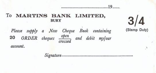 examples of cheques and cheque books in our archive, comes this Bury cheque