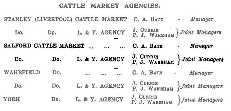Lancashire and Yorkshire Bank runs five cattle market agency Branches – at