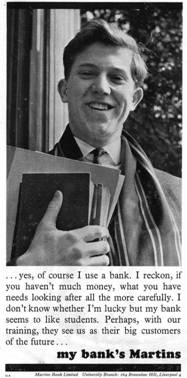 their grant, or tide them over with a student overdraft. From 1961 to 1964 Martins Bank’s advertising